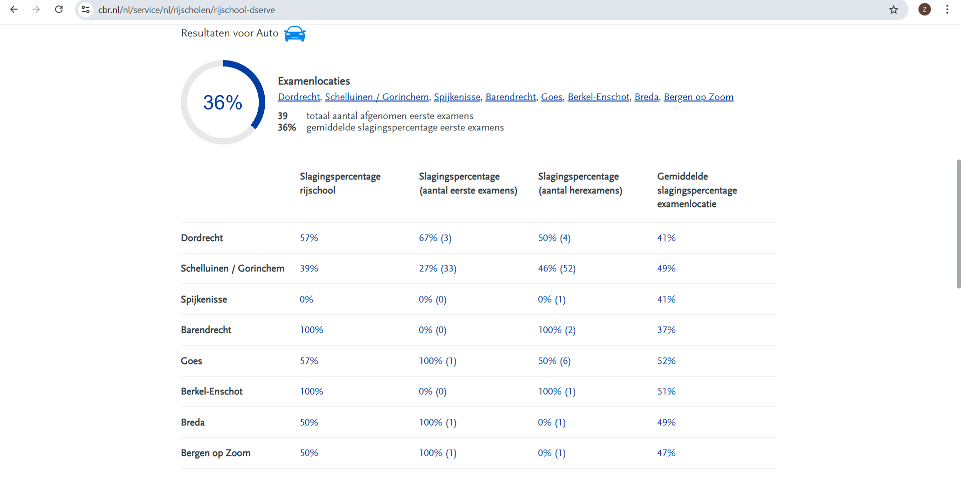 Volgens het CBR slaagde in 2025 36% van de leerlingen voor het auto-examen (landelijk gemiddelde is 54%). Voor het motorexamen slaagde niemand: 0 van de 3 kandidaten.